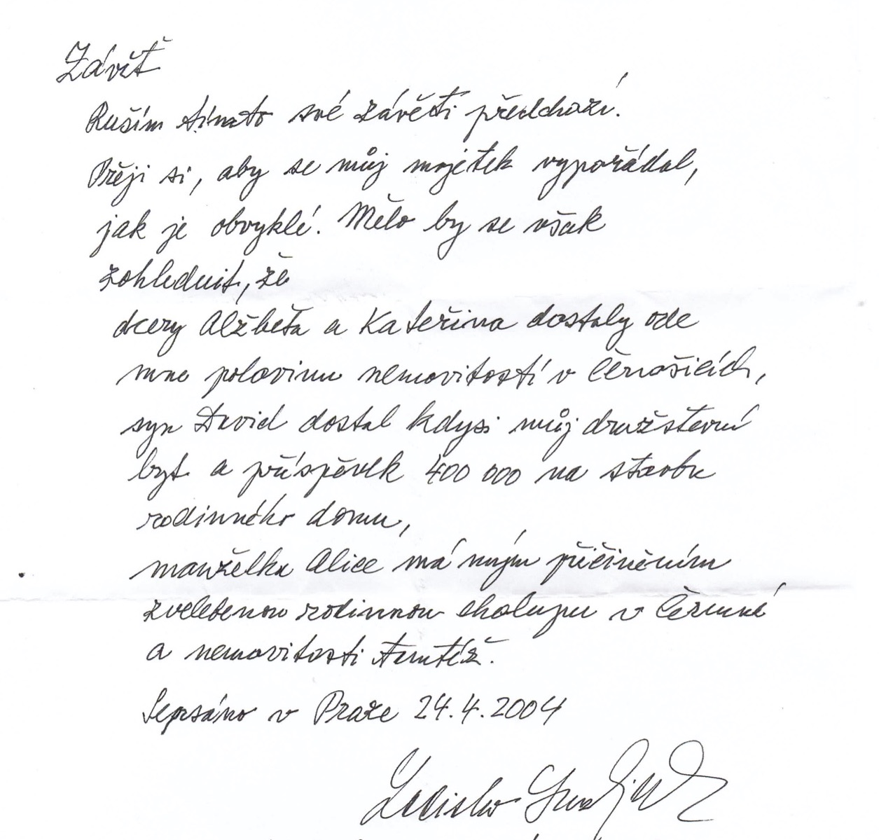(Na obr. fragment Smoljakovy závěti z roku 2004)